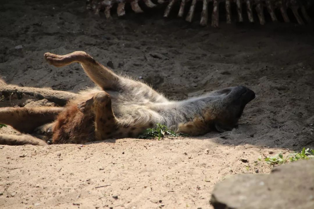 斑鬣狗,素有“非洲二哥”之称,在夏天炎热的时候当然是挖个坑躺进去享受那一丝凉爽啦!这“四脚朝天”式睡姿看起来挺舒服的。