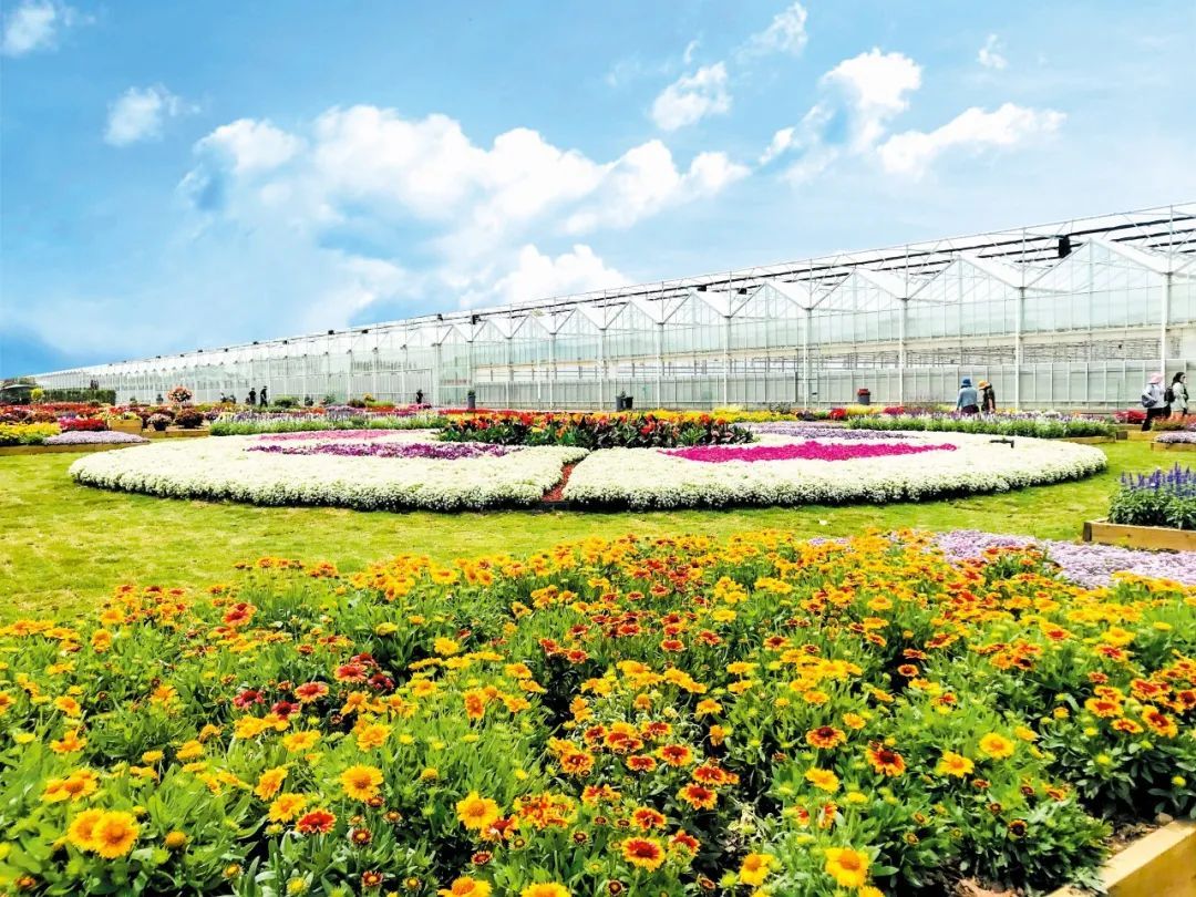 上海崇明智慧生态花卉园内各类花卉植物种类丰富,不同主题的花境景观错落有致,独特设计的地景艺术作品为整个园区带来无限活力。花儿竞相绽放,空气中弥漫着花香,花匠在花海中辛勤劳作,形成一幅美丽和谐的乡村画卷。园区主要由育苗中心区、品种展示区和室外观赏区组成,聚焦“生态、科技、种源”三大要素,以建设智能花卉育苗中心为目标,旨在实现崇明花卉产业的“弯道超车”。