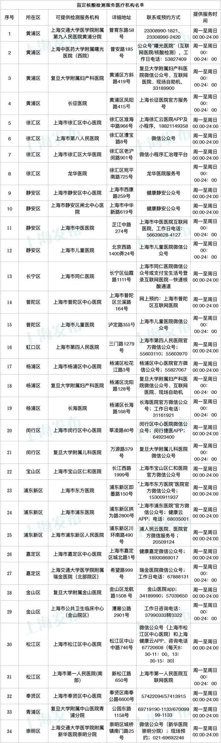 市疫情防控工作领导小组办公室发布紧急通告:接外省市协查通报,根据国家和本市疫情防控要求,请2021年10月30日至10月31日期间进入上海迪士尼乐园和迪士尼小镇的所有人员主动向所在社区和单位(或学校等)报告,并应立即前往就近的指定医疗机构进行核酸检测,全程佩戴口罩。下列医疗机构提供24小时核酸检测服务。