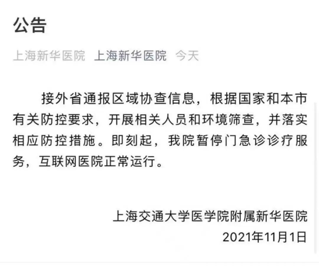 上海儿童医学中心、新华医院今天宣布:即刻起,暂停门急诊医疗服务,互联网医院正常运行。
