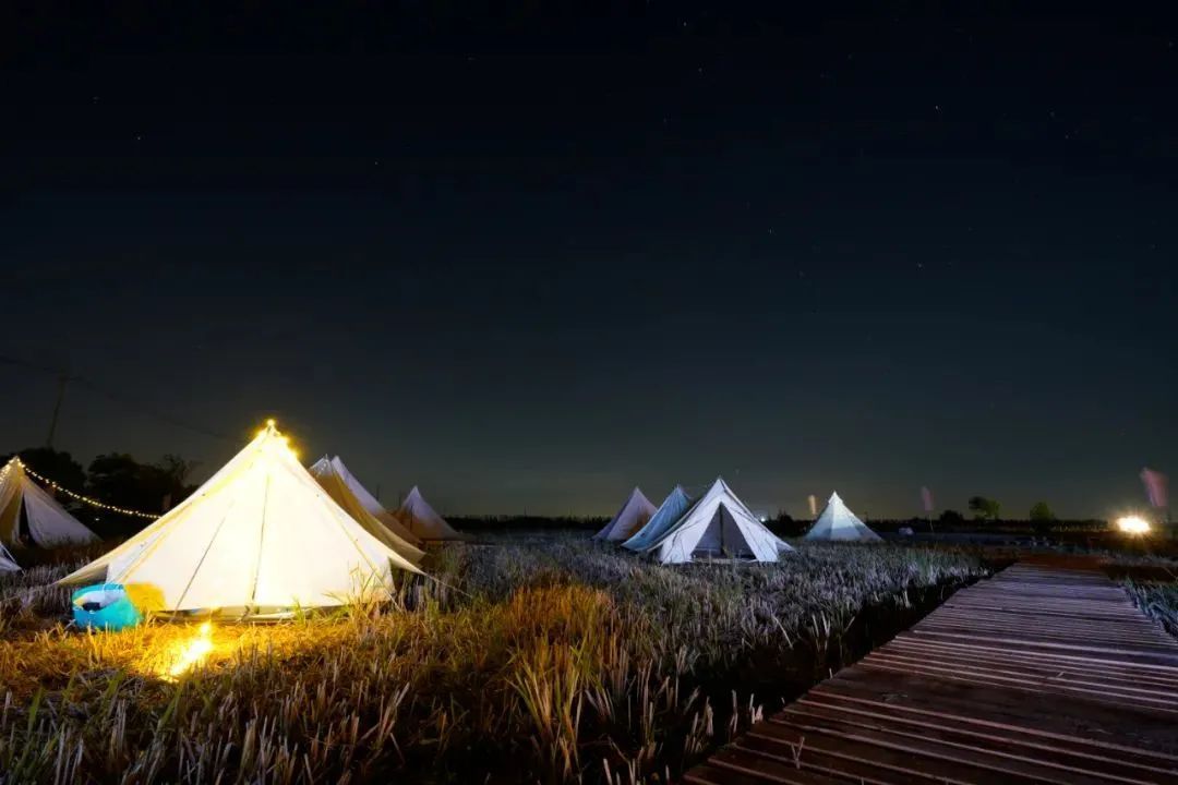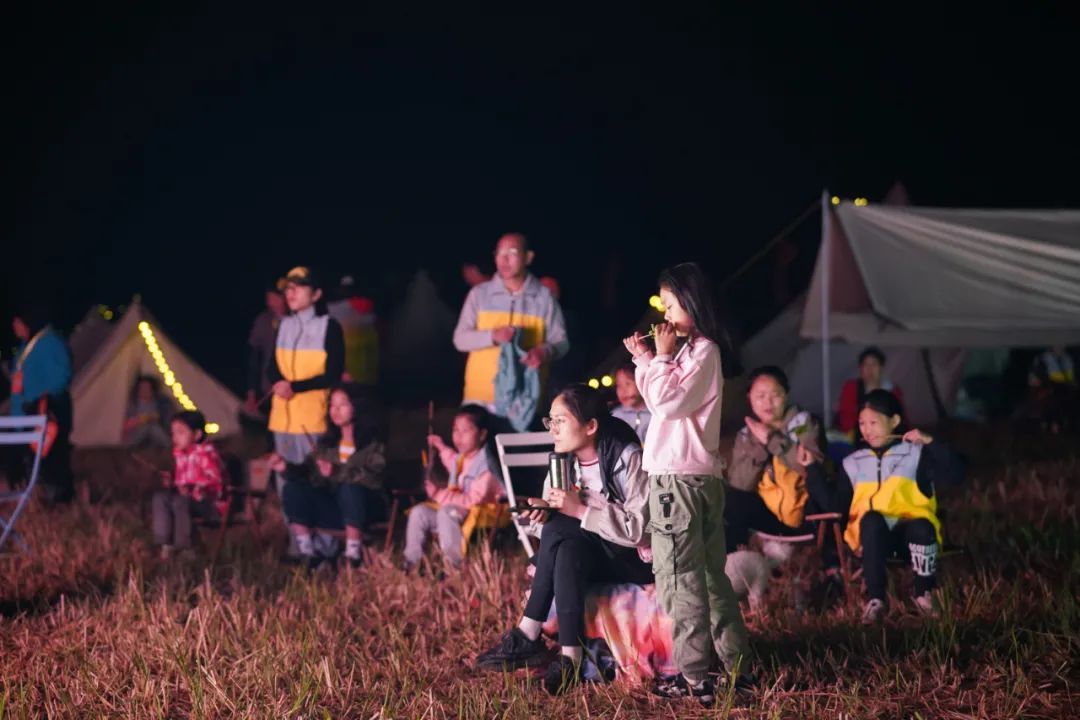 搭帐篷,比动手能力——每个家庭都搭起自己的帐篷,挑选他们最满意的地方开始支楞起这一晚上的简易小屋。在老师的指导下,很快大家便完成了帐篷的搭建。夜幕降临,烧烤架上炊烟袅袅,大家手里拿着新鲜出炉的串儿,一起看着露天电影,享受悠闲的时光。夜晚,回到帐篷里谈笑风生,伴着点点星光,在稻田味的空气中缓缓进入梦乡。