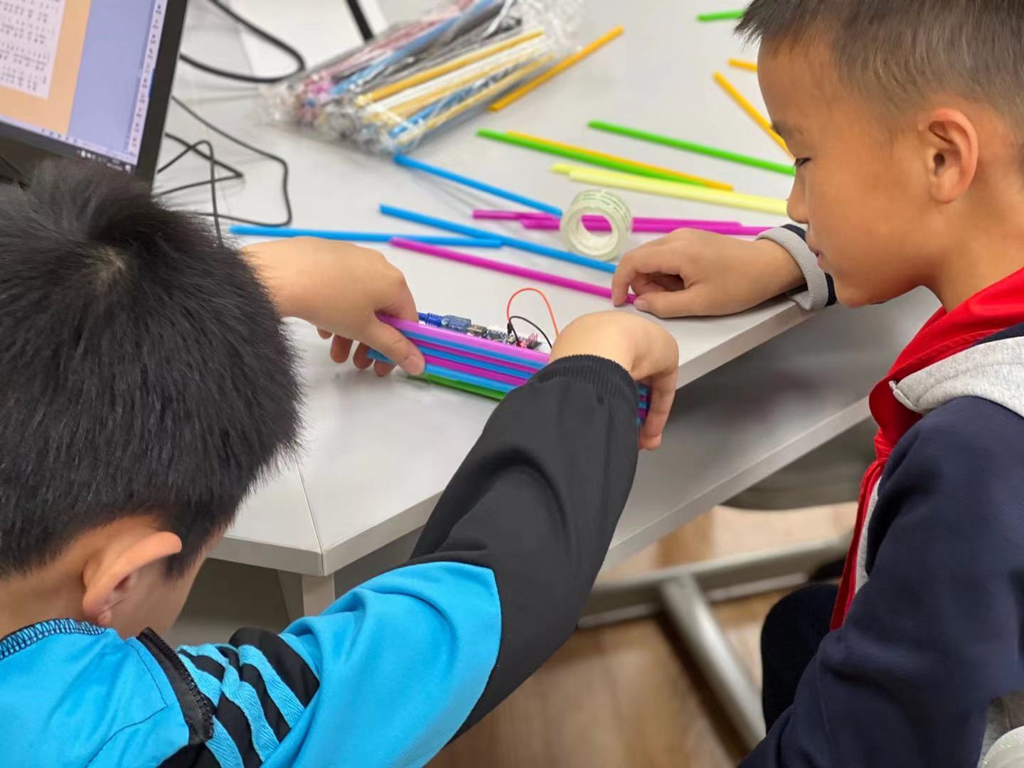 电子社团的同学们在进行“Ardunio创意作品制作”,运用单片机原理现场编程控制蜂鸣器演奏动听的音乐,加上雪糕棒制作的创意外壳,完成自己独一无二的“智能小乐器”。