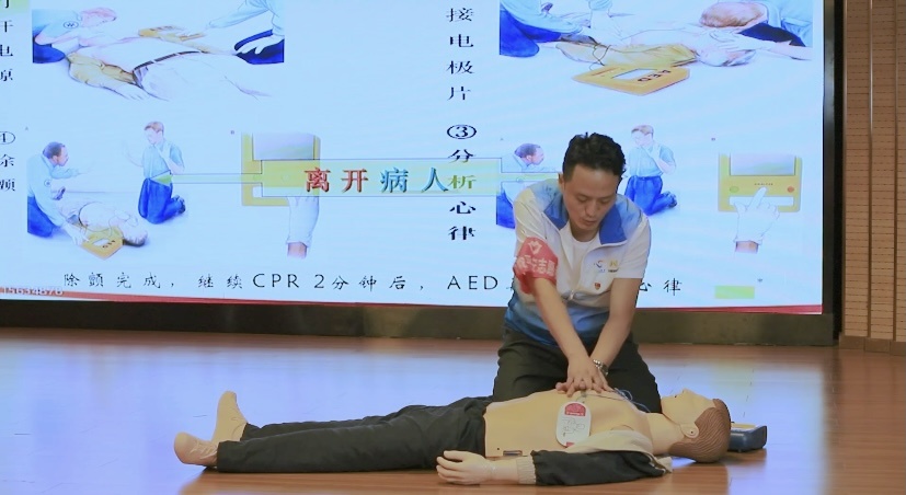 今年4月,姚锦梁在与小区“三位一体”讨论相关事项时,物业公司的员工朱先生突然晕倒在地上。掌握应急救技能的姚锦梁临危不乱,在拨打120急救电话后,又对患者进行了心肺复苏按压,成功挽救朱先生的生命。“一个人高马大的人突然就倒下去了,说不慌是假的,但我告诉自己一定要冷静。”姚锦梁来到活动现场,回忆起事发时的心情,“这次事情也让我意识到急救培训的重要性,多一个人学会急救技能,在面对突发事件时就多一分获救的可能。”