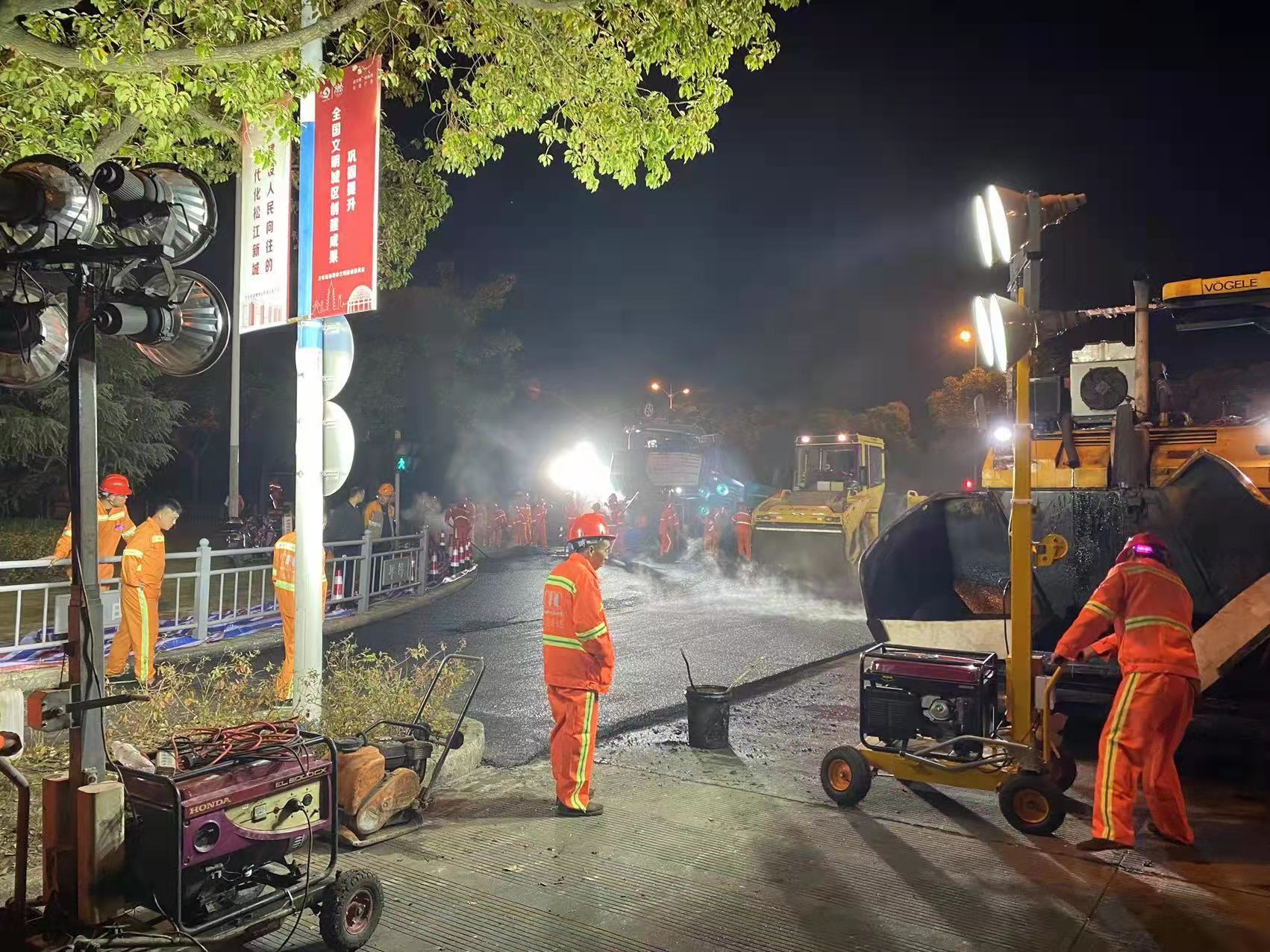据了解,此次“白改黑”项目涉及松江区沪松路、普照路、长桥街、西林南路、乐都西路、绿城路、通欣路、德望路、玉华路、文汇路和思贤路(东西两段)等12条城区道路,施工人员将为道路加铺超薄沥青罩面层。为了最大程度减少对市民出行的影响,施工安排在夜间进行。10月31日晚上7时许,绿城路率先开工,施工人员按照流程有序施工,加铺超薄沥青罩面层后的道路焕然一新,标线也更加清晰。