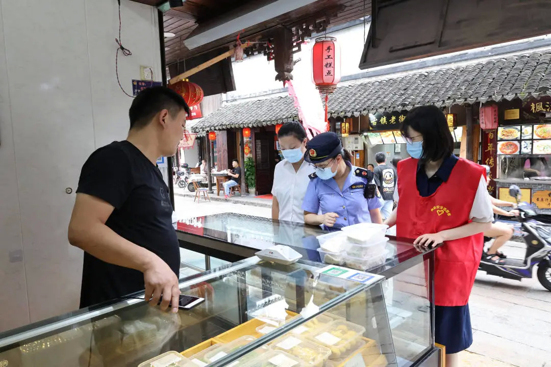 如今,枫泾古镇各类特色食品越来越多,为切实防控食品安全风险,提高食品安全管理水平。近日,枫泾镇食药安办在全镇范围内以古镇小吃店、散装食品售卖店等经营场所内的散装食品、现制现售食品为整治重点,深入开展食品安全隐患排查。