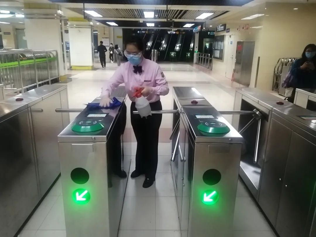 面对突发情况,2号线迅速响应,一方面做好应对接驳乘客的准备,确保运营平稳有序;另一方面在运营结束后,对车站进行全面消杀,做好疫情防控工作。