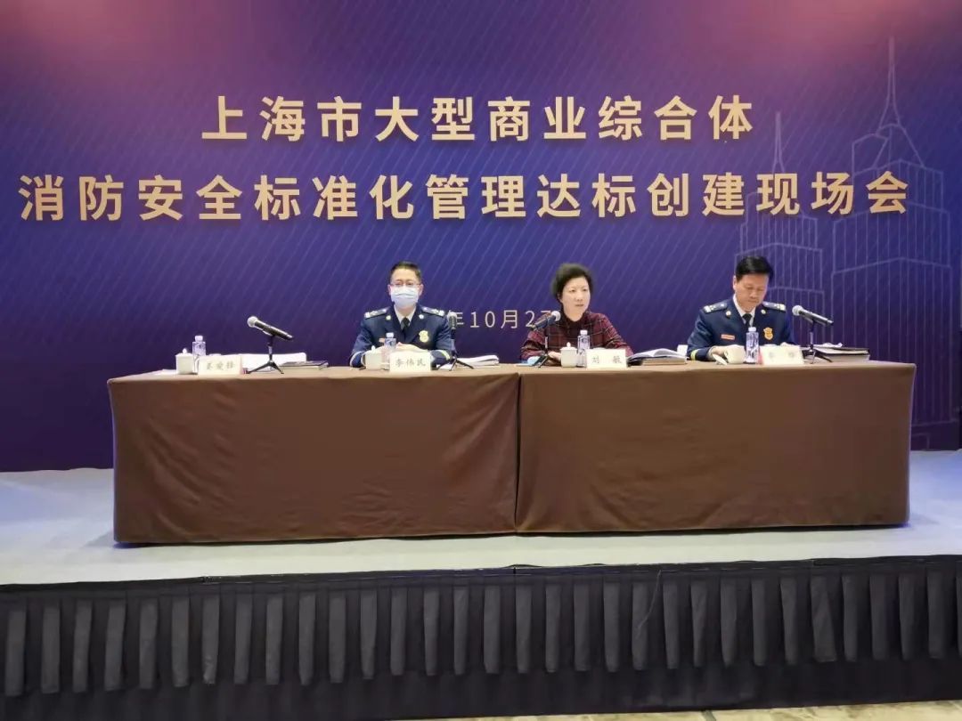 近日,上海市商务委员会和上海市消防救援总队联合在普陀区环球港召开全市大型商业综合体消防安全标准化管理达标创建现场会。市商务委副主任刘敏、市消防救援总队总队长李伟民、普陀区常务副区长姜爱锋出席会议并讲话。