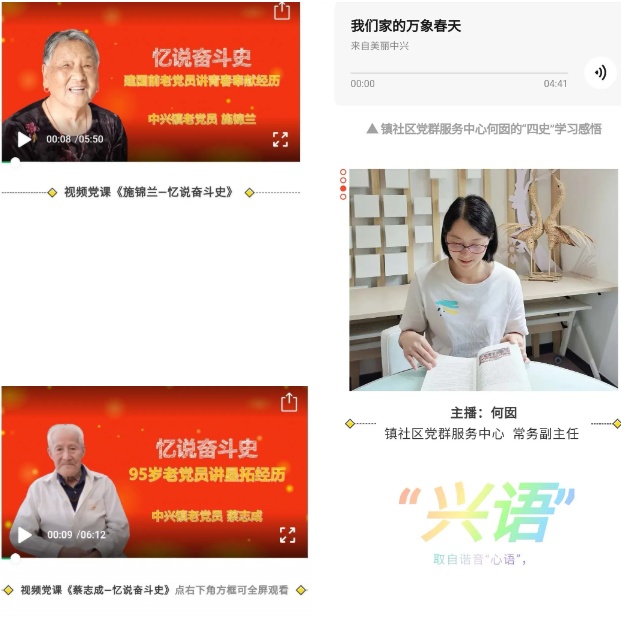 积极适应新形势、新任务、新要求,利用新媒体,开发和打造党员爱听爱看、群众喜闻乐见的“线上党课”,推出“兴印”视频、“兴语”音频栏目,讲述正能量故事、传播正能量声音,方便党员群众统筹兼顾学、随时随地学、灵活机动学,确保学习不断档。