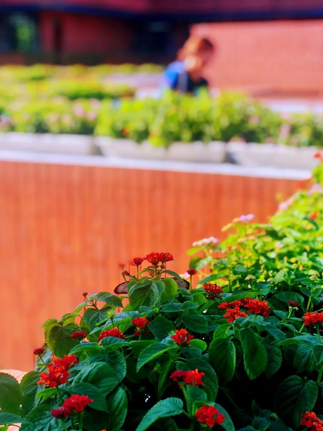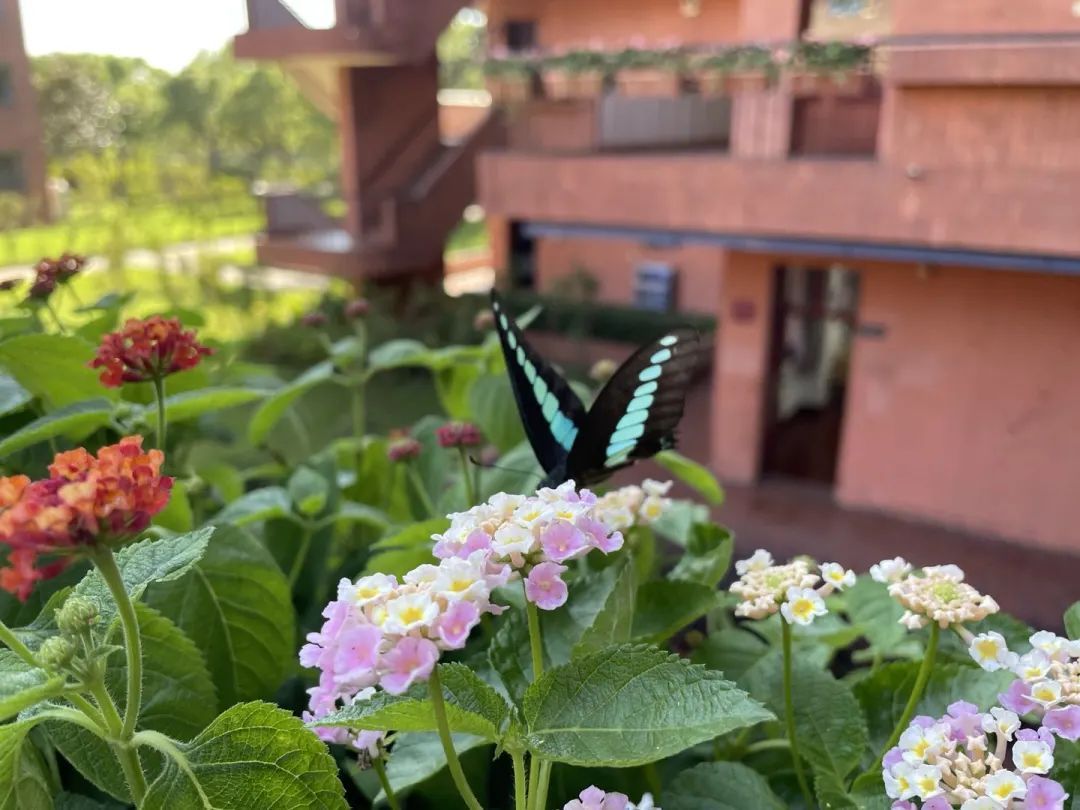 在阳光明媚的日子里,还能见到彩蝶蹁跹,靓丽的蓝色翅膀与暖色的花卉相互衬托,充满了生命的张力和美好。
