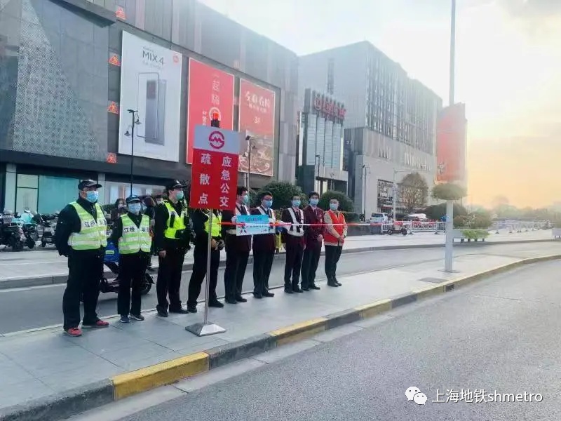 演练开始,参演人员迅速响应,携带引导工具及时到达预案指定点位进行客流疏散、引导;派出所民警、街道增援人员穿着志愿者背心,在15分钟内到达车站各出入口及公交短驳点等指定点位进行疏导客流。
