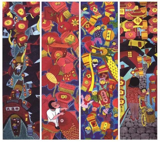 这一幅幅民俗绘画,构思独特、色彩斑斓、形象逼真。创作题材涵盖了“百姓生活、民风民俗、农家场景”等主题;内容淳朴率真、贴近生活,其素材主要来源于民间蒸年糕、纺纱织布、灶台年画、划龙船等一系列民俗传统文化,诠释了“文香罗店”、“乡村振兴”的成果。