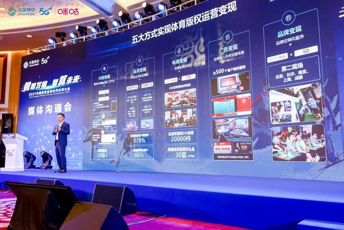 在日前举行的2021年中国移动全球合作伙伴大会上,中国移动携手数百位合作伙伴展示以5G+、数智化为主题的海量技术内容及应用成果。其中,咪咕公司体育版权运营商业模式首度发布。