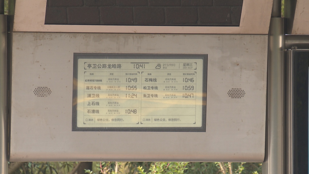 为了方便市民有效候车,合理安排出行计划,金山区积极推进电子站牌建设工作,电子站牌能实时显示公交线路、开往方向、预计到达本站时间、天气预报等服务信息,截止去年年底,金山区已建成310块公交中途站点实时到站信息预报电子站牌,今年计划在枫泾镇、亭林镇以及亭枫公路二期和朱漕路道路改造中共计安装150块,项目计划至明年年初完成。