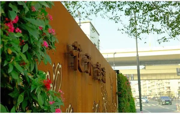 同时,增加适量休闲功能,打造一条舒适宜人的休闲道路。在场中路近共和新路口,由于临近彭浦东街心花园,以老工业文化和玉兰为特色,增设“花开彭浦”特色绿墙,丰富绿化形式,提升景观品质。