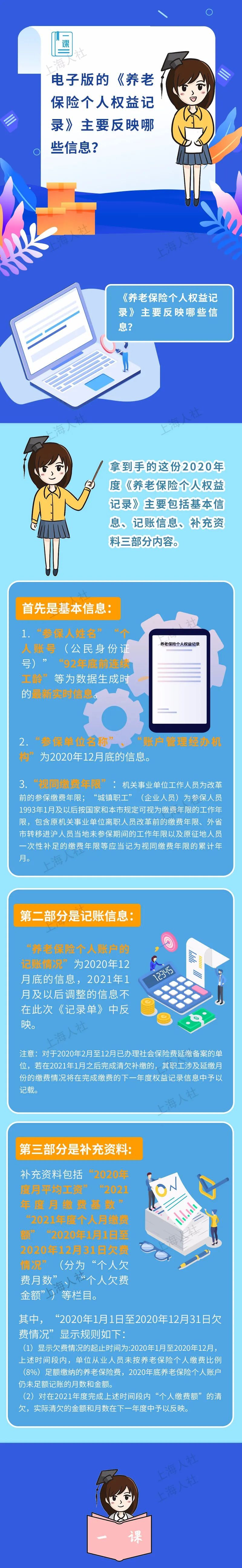 小何昨天使用“随申办”APP,已经获取了自己的这份2020年度的《养老保险个人权益记录》,一页纸却满满当当记录了她很多社保方面的信息。但是这些信息具体含义是什么呢?别急,粒粒博士已经竖起小黑板,马上为您讲解。