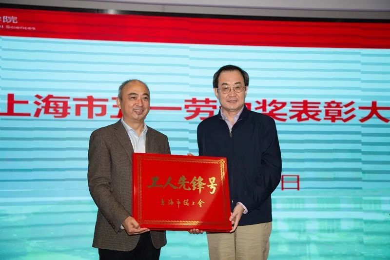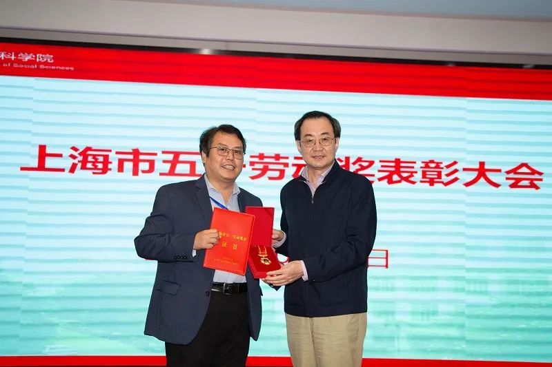 院党委组织部长包蕾萍宣读上海市总工会表彰决定,授予上海社会科学院图书馆2021年度“上海市工人先锋号”,授予中国学所研究员焦世新“上海市五一劳动奖章”。院党委书记权衡为获奖个人和单位颁奖。