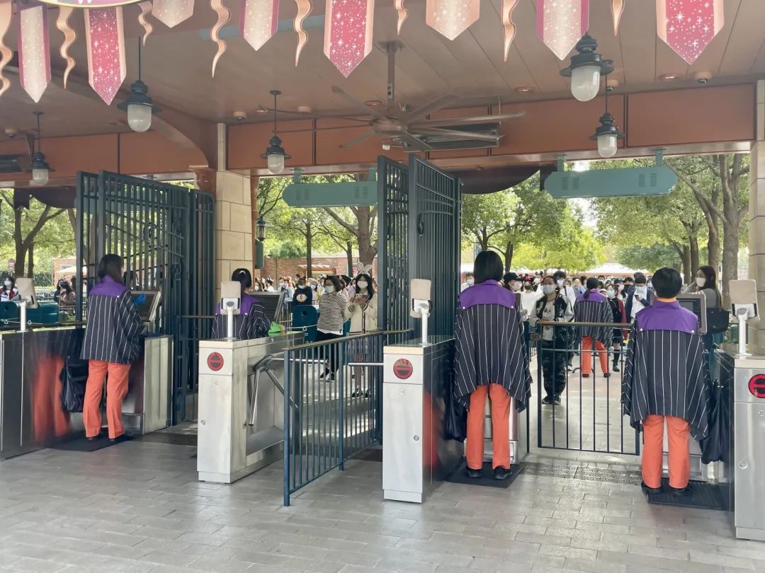 上午9时许,小编在上海迪士尼乐园入口处看到,虽然距离开园还有一段时间,但已有不少游客有序排队等候入园。工作人员手持提示牌,提醒游客保持适当距离,确保防疫效果。