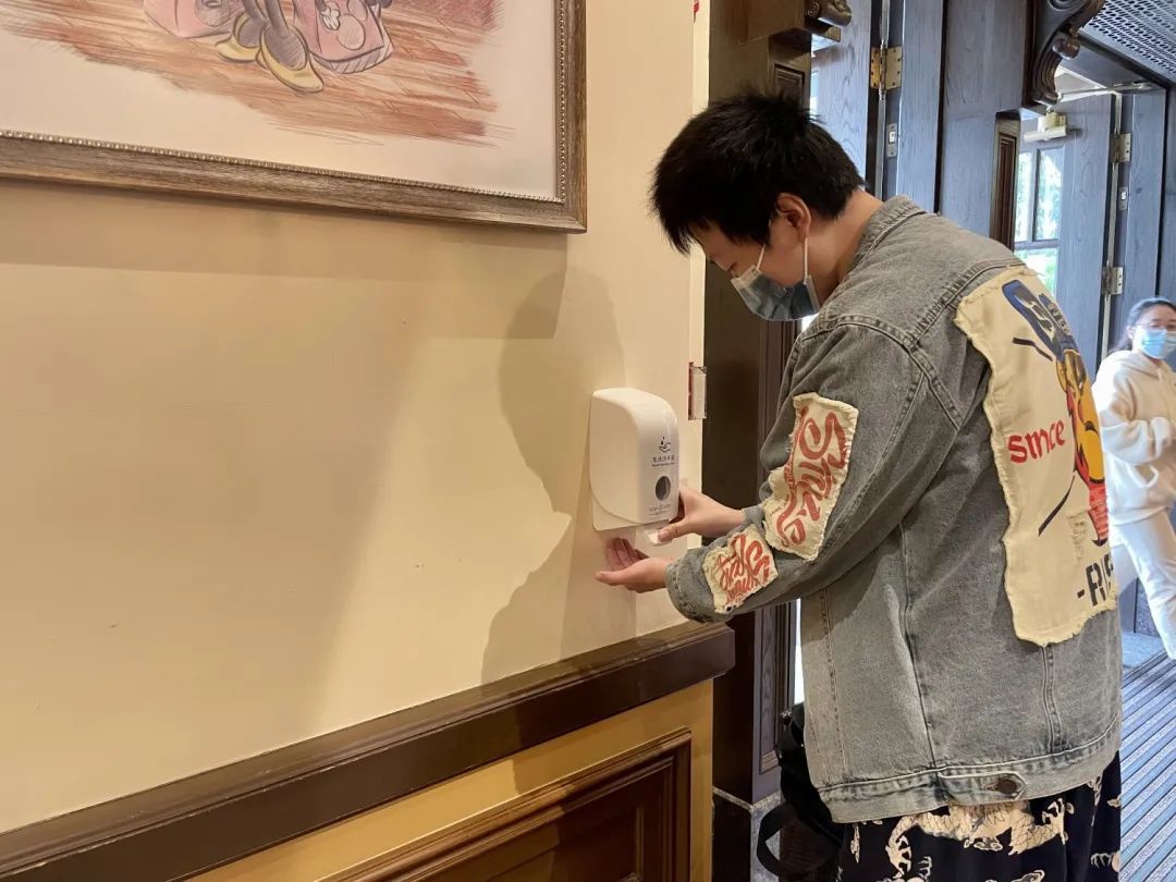 为了让游客们无忧无虑地追寻快乐,在防疫方面,迪士尼乐园做好了充分的准备。园内所有排队区域、餐厅、游乐项目等都设置了安全距离,工作人员拿着各种标牌不断提醒游客做好防疫措施。餐厅、商场等设施的入口处都摆设了免洗洗手液,供游客自行取用。与此同时,工作人员也在不断地对各类设施进行消毒、保洁,一丝不苟。