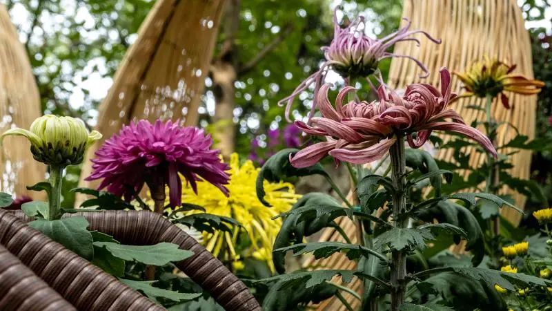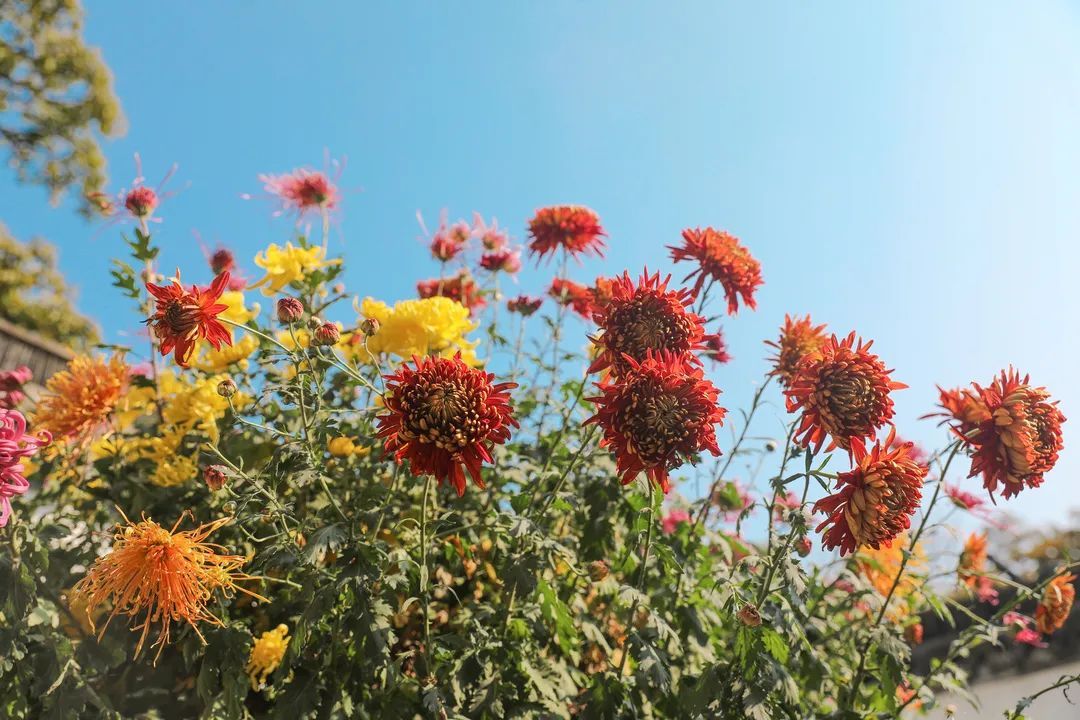 本次菊花展展出了独本菊、多头菊、山石菊、大花菊、球菊等10个大类、近200个品种。相比往年,今年的菊花展还增加了室内插花花艺展示。缤纷多彩的菊花与曲水园小巧玲珑、水石相映的园内空间巧妙融合,让游客可以充分体会到江南园林的独特魅力。
