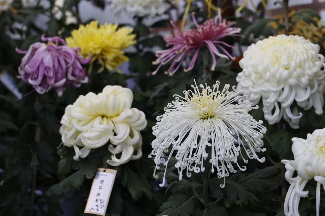 各式菊花团簇相拥、流光溢彩、姿态各异