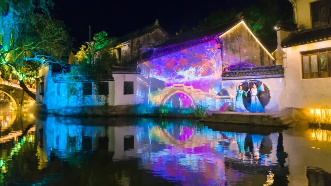 夜周庄是在周庄本地土壤中生长出来的夜游品牌,以光影科技、艺术设计点亮周庄的湖湾、水巷、小桥、老街、古宅、名刹,用南北市河及沿河街道将文创灯光串联成珠,形成夜游特色内容产品。清风沉醉的夜晚,邀你解锁周庄奇妙夜。