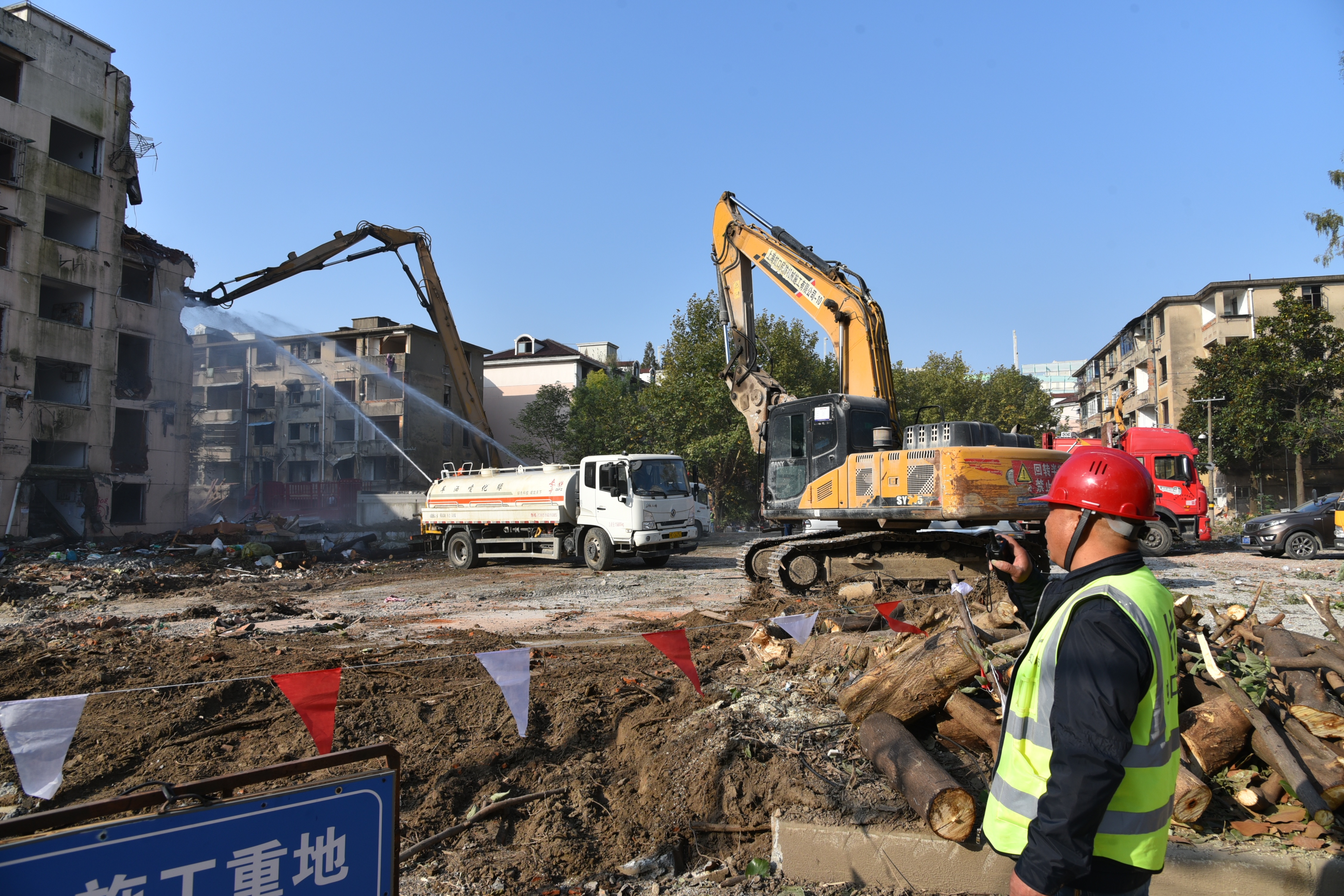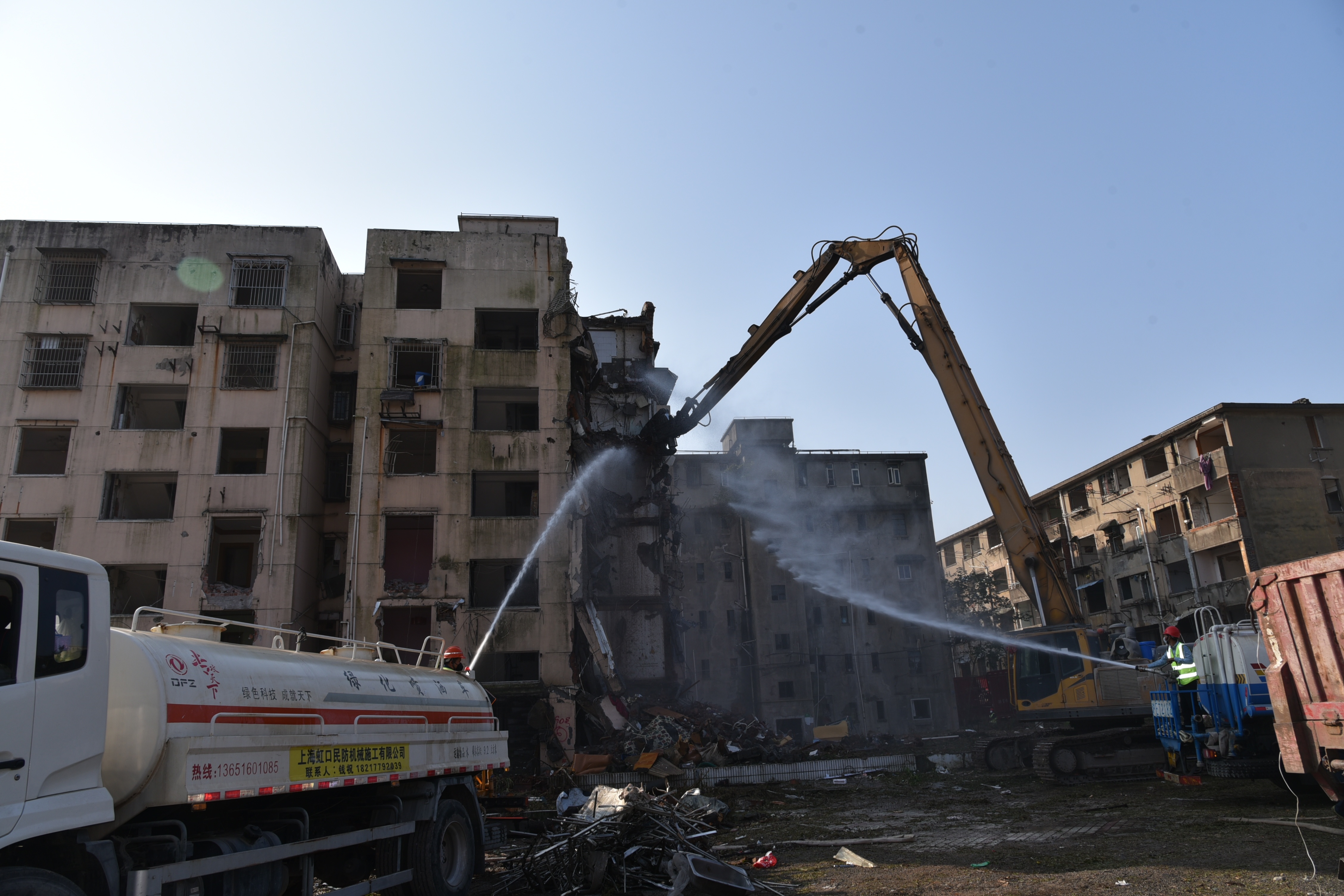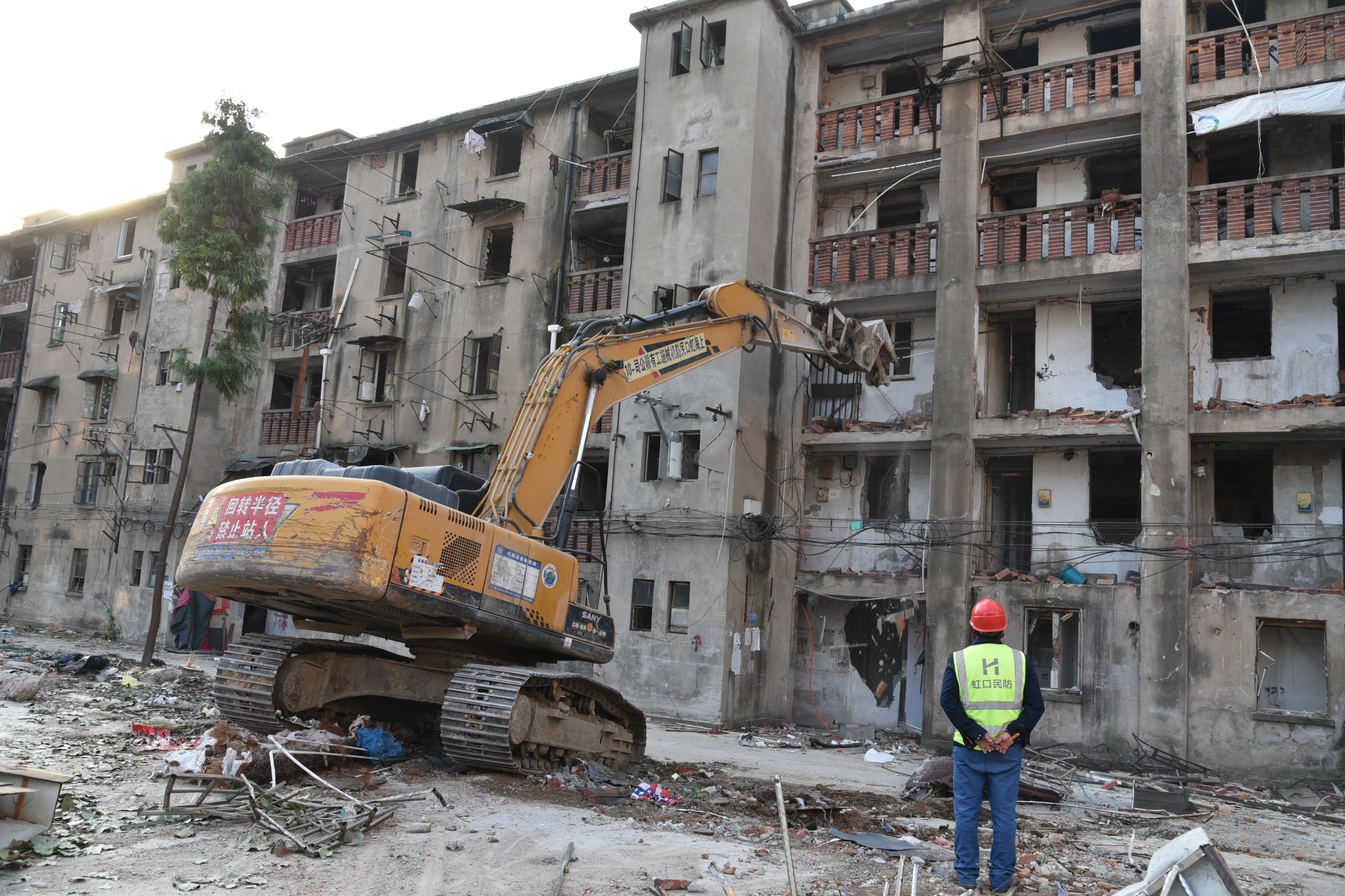 在机器的轰鸣声中, 89号、90号居民楼轰然倒塌,打响了彭一小区规模性拆房的“第一枪”。