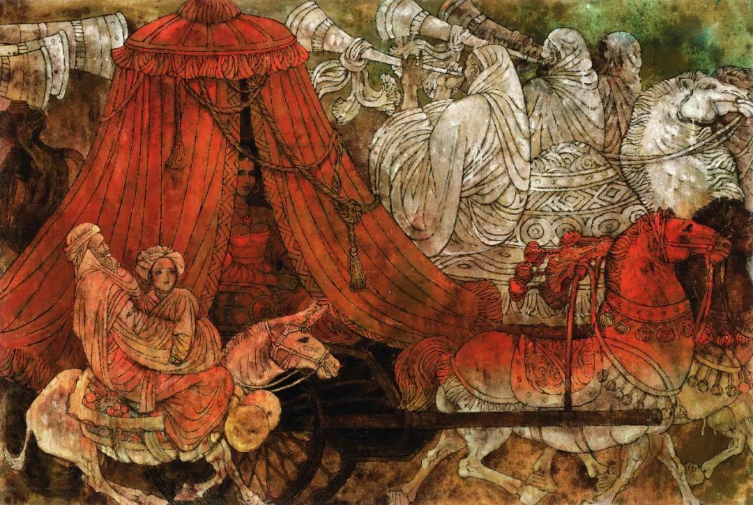 《波斯迎亲》杨晓阳 115×234cm 纸本设色 1994年