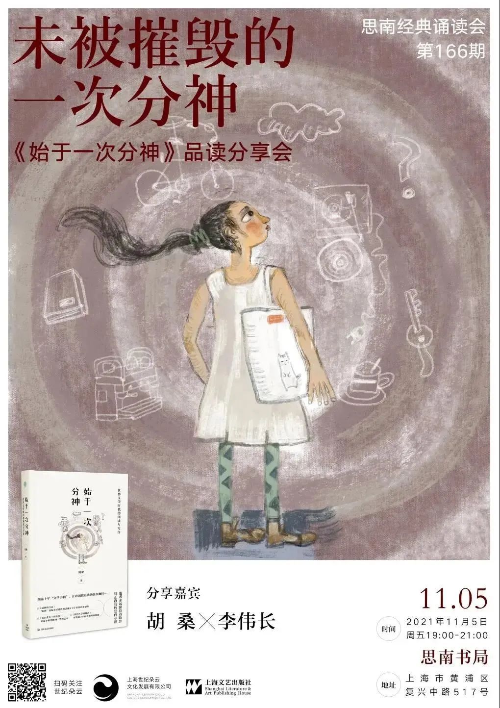 本周五晚,胡桑将携新作《始于一次分神》做客思南诵读会,聊聊“未被摧毁的一次分神”。