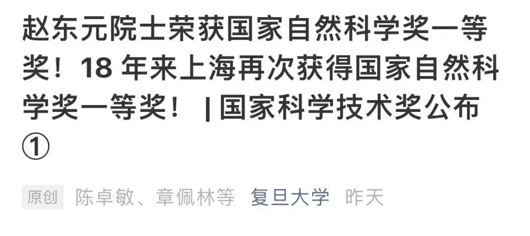 2021年11月3日国家科学技术奖公布。中国科学院院士、复旦大学化学系教授赵东元、教授李伟等完成的《有序介孔高分子和碳材料的创制和应用》项目,原创性提出了有机-有机自组装思想,创制了有序功能介孔高分子和碳材料,揭示了介孔独特的物质输运和界面反应规律,获得自然科学一等奖。这也是18年来上海再次获得国家自然科学奖一等奖。