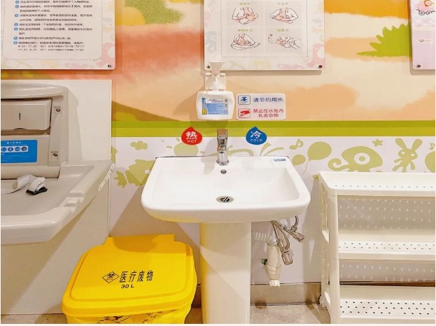 除了外观设计,哺乳室内部设施也处处彰显了人性化关怀。每间哺乳室都有专门给宝贝们换尿不湿的操作台,整洁舒适。墙上有科普宣传画,传授母乳喂养知识;独立的洗手池,配备了洗手液和垃圾桶,干净卫生,还额外增加了置物架来解放妈妈双手。每间哺乳室都设置了软沙发,妈妈可以在这里舒适的休息片刻,安心给宝贝授乳。室内还有拉帘,打造专属空间,让妈妈们可以安心给宝贝授乳。