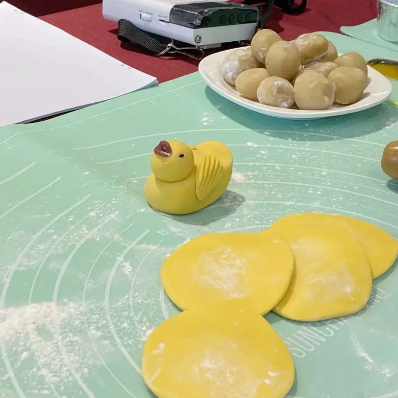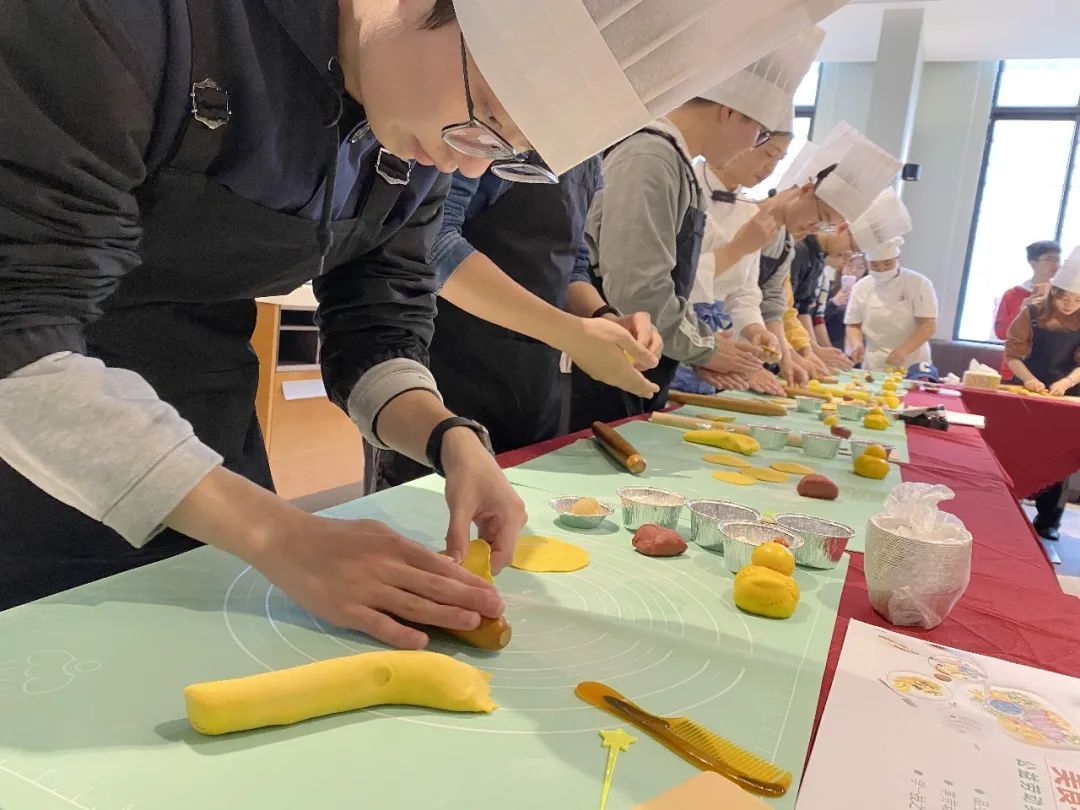 第一堂课的内容是中式点心——卡通小黄鸭包。课程的前半场为同学们科普了中国传统面点知识,后半场安排了大家动手实践,让同学们体验从擀皮、揉、包、捏到最终成型的制作全过程,看似简单的动作,却蕴含着中式面点的传统技艺精髓。