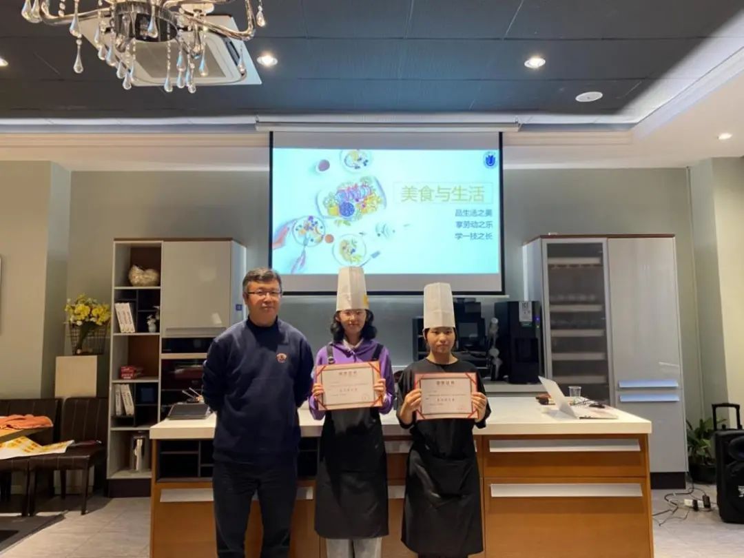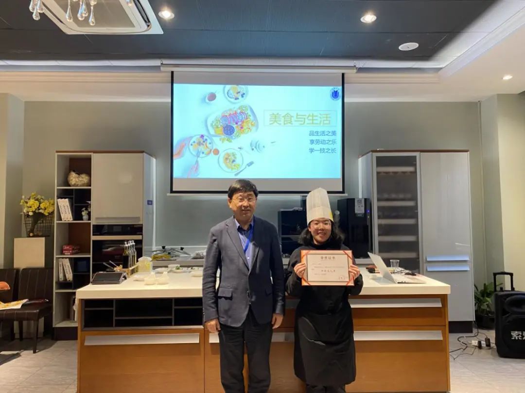 每堂课结束后,专业厨师都会对同学们的作品逐一进行点评并颁发荣誉证书,让同学们切实感受到劳动的快乐。