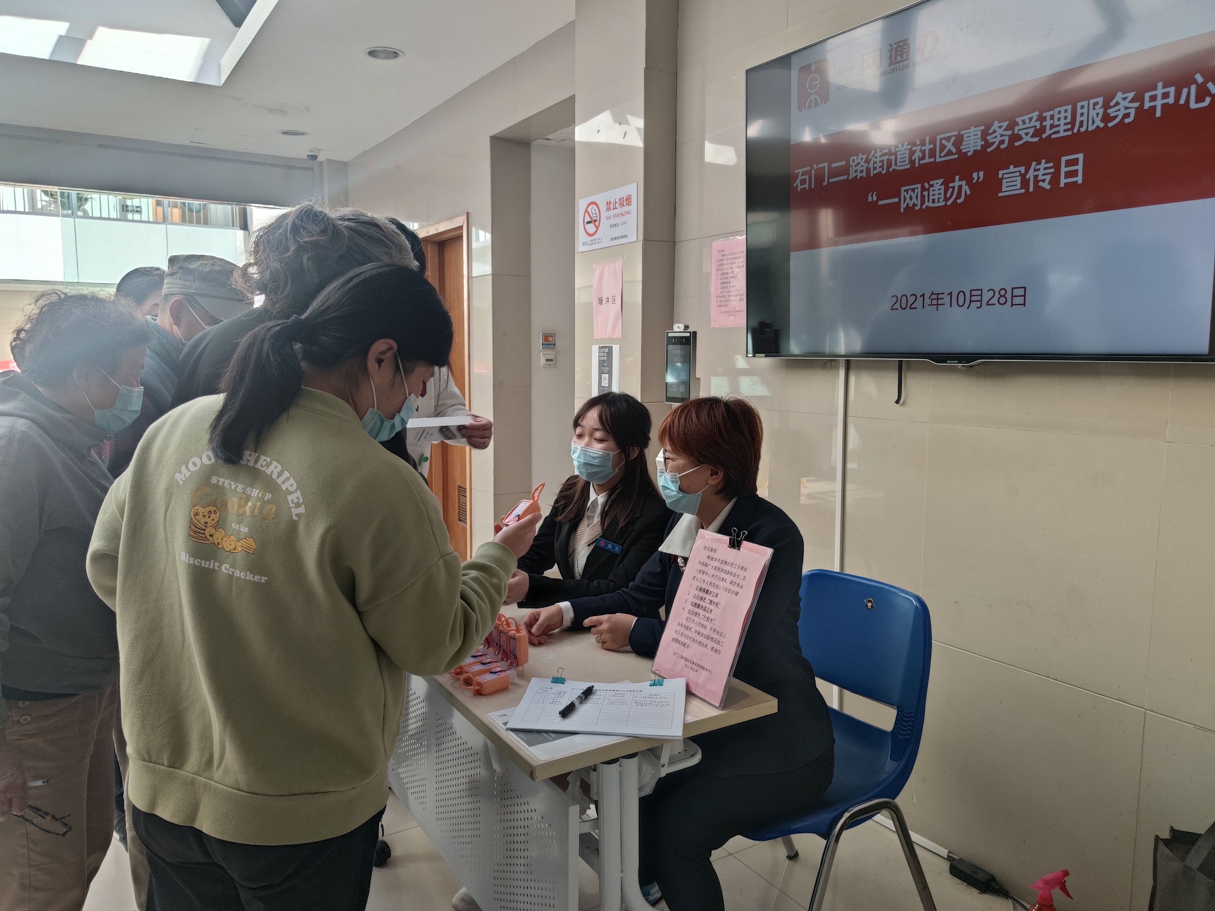 t如今,石门二路街道通过“一网通办”便民服务,已真正实现了让百姓各类社区事务受理能够“家门口、指尖上、一体化”的办结的目标。