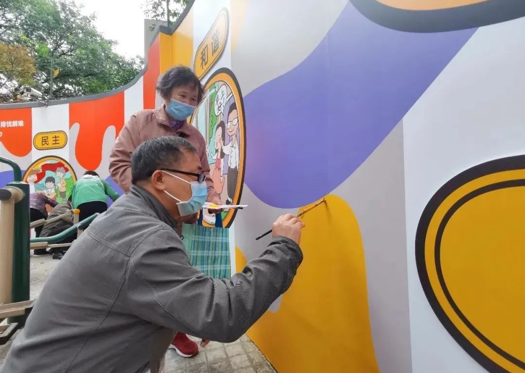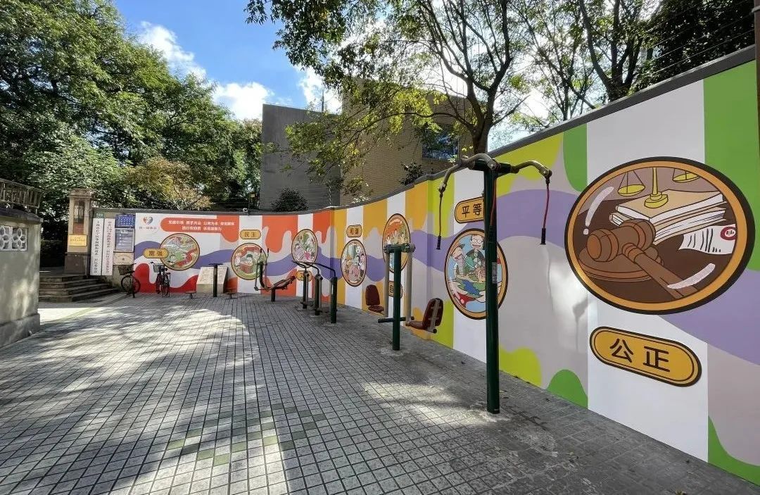 “彩绘墙位于居民来居委会的必经之路上,前面还有一排健身器材,我们选择在这里绘制宣传画,就是想通过接地气、有新意的方式将正能量宣传融入百姓生活中。”苏一居民区党总支书记韦菲说道。