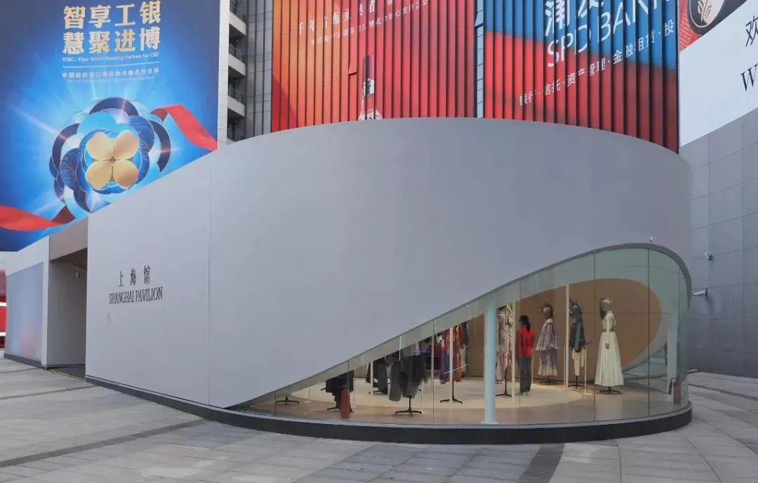 在展陈设计上,上海馆结合了上海品牌优势,集成了具有文化传承的老字号品牌、具有国际影响的设计师品牌、具有智能技术的制造品牌,打造序厅和以“百年华章”“智造未来”和“可持续时尚”为主题的三大展区。上海馆三大主题展区联合打造了“上海品牌进博首发”新品集合店,推出了共59款年度新品、24款当季新品、6款进博首发新品,与“四叶草”场馆内的国际品牌同台竞技,引导本土品牌加速创新升级。展馆的主色调以简约大气的银灰为基调,内部则采用了暗金色,以低调的颜色,诠释上海人对生活品质的追求。