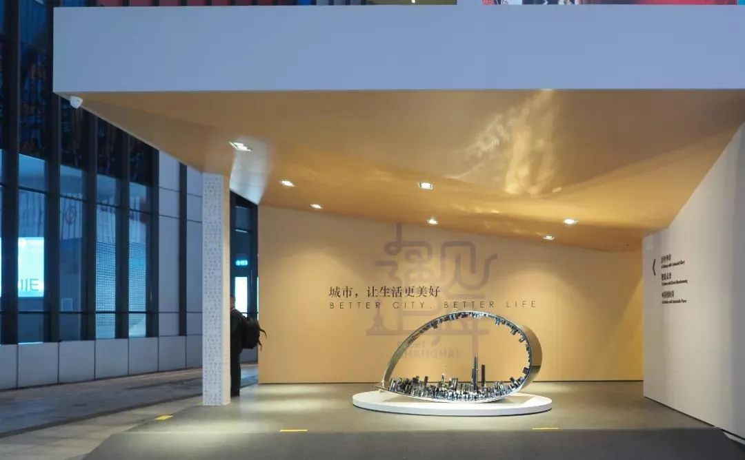 娄永琪特别挑选了设计创意学院周洪涛教授和方大设计总建筑师齐方博士设计的大型景观雕塑“上海之眼”作为序厅的视觉焦点,装置通过拉升文字呈现上海的天际线,形成席卷大地之壮景,管窥城市的高速发展。