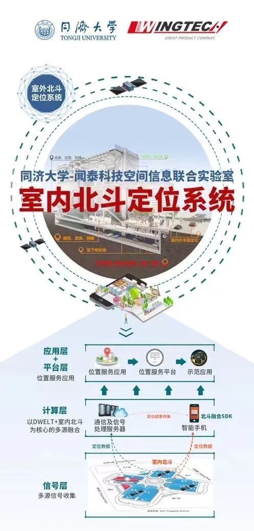 随着2020年7月北斗三号全球卫星导航系统正式开通,我国全面落实贯彻北斗“天上好用,地上用好”的布局已迫在眉睫。在此背景下,同济大学携手闻泰科技成立同济大学—闻泰科技空间信息联合实验室,依托同济大学具有国际领先水平的室内定位算法以及闻泰科技在手机系统研发和半导体核心硬件技术上的深厚积累,合力打造全球首例面向手机的室内北斗定位导航系统,并在2021年第四届进博会上成功推出系列产品和标准,全力支撑我国北斗室内位置服务产业的建设。