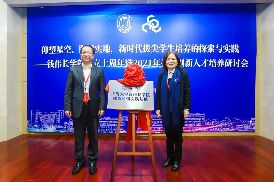 聂清副校长与桑标院长一起为“上海大学钱伟长学院摇撸科创实践基地”揭牌。