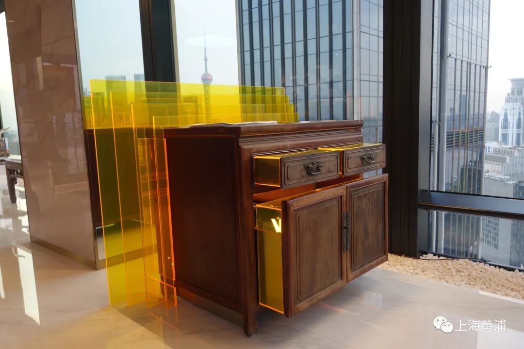 作为中国最早一代学院派的室内设计师,陈耀光此次展出的作品是其对一直以来收藏的古典家具的一次全新解构与重释。他将这些古典家具摆放在窗边位置,意欲向上海滩致敬。通过调动不同常规的材料和手法,进行一次错位转换,老物件有了新生命,并让它们在未来的生活中,继续活得新鲜。