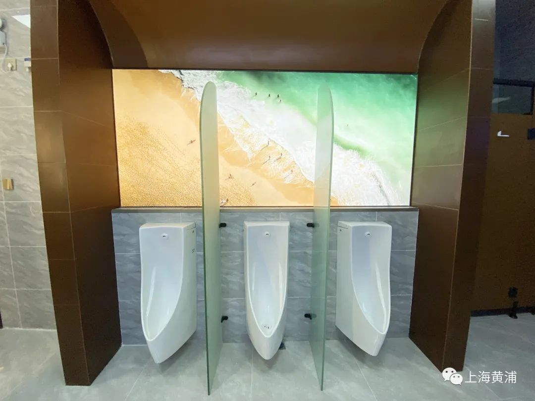 此外,在厕所选用的材质上,也是绿色抗菌的,如男厕区小便斗下方配有小便斗专用瓷砖,可有效抑制杂菌引起的尿素分解,可有效控制氨臭的发生,耐污染性大于3级。厕所室内隔断及配件采用防火防腐抗倍特板,防火B1级,抗菌率达99.9%。