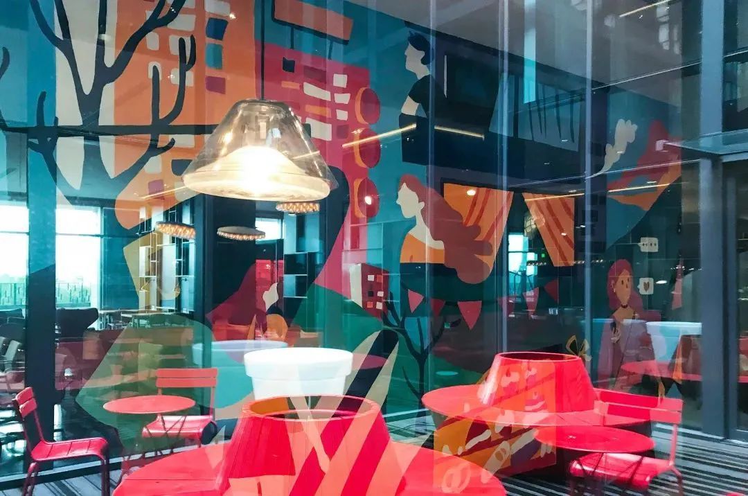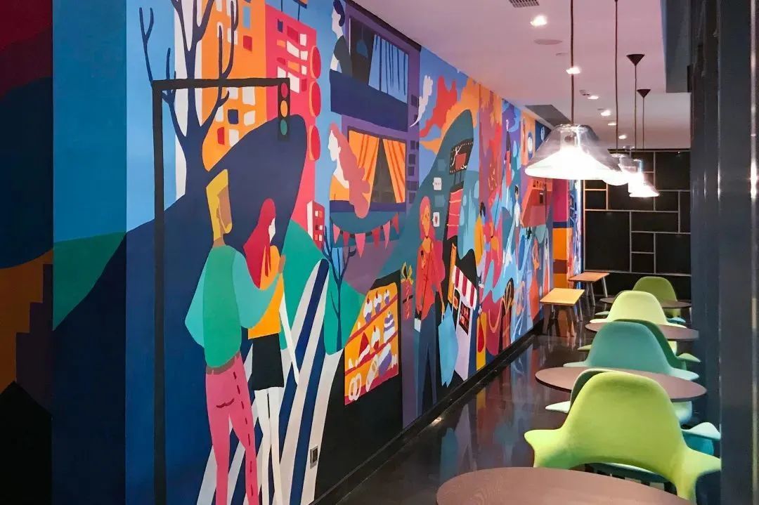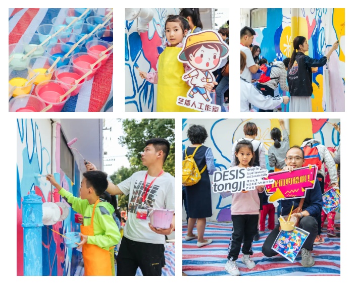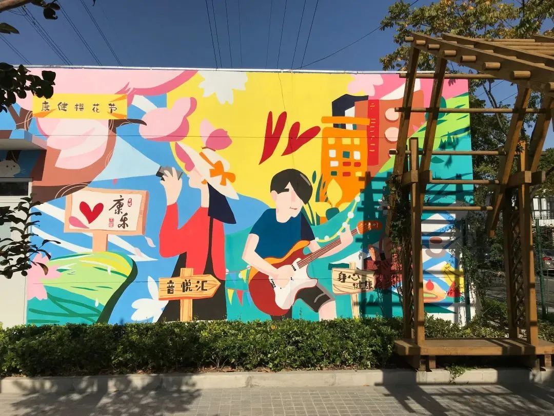 近年来,他们的设计拓展到更多领域,在上师大附属杨浦滨江实验小学,“康乐汇”康健街道社区党群服务中心都能看到他们多彩的设计。