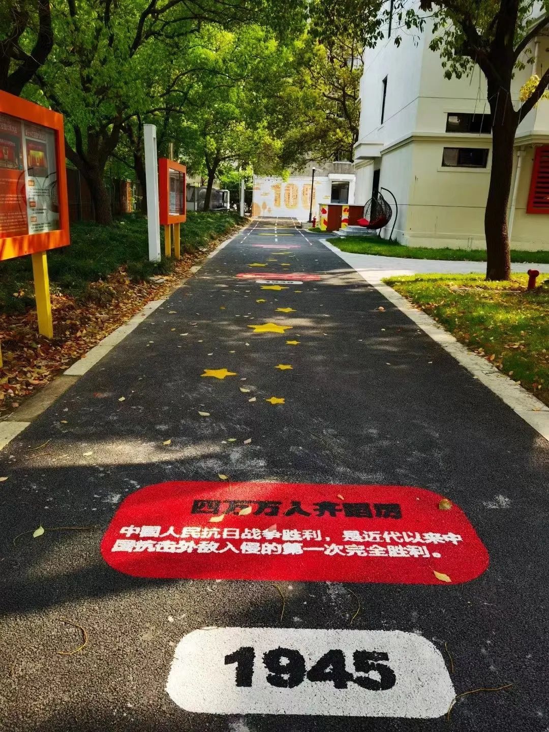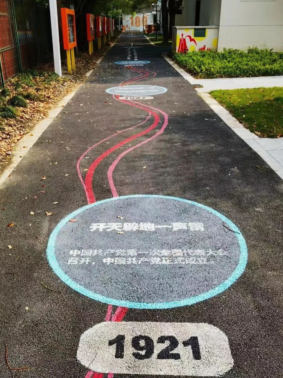 走进上海师大东部校区,有一条充满活力的散步道格外吸睛。百米步道上,不仅用彩绘展示了建党百年的伟大历程,还在终点集中描绘了中国共产党人精神谱系的伟大精神,令人难忘。