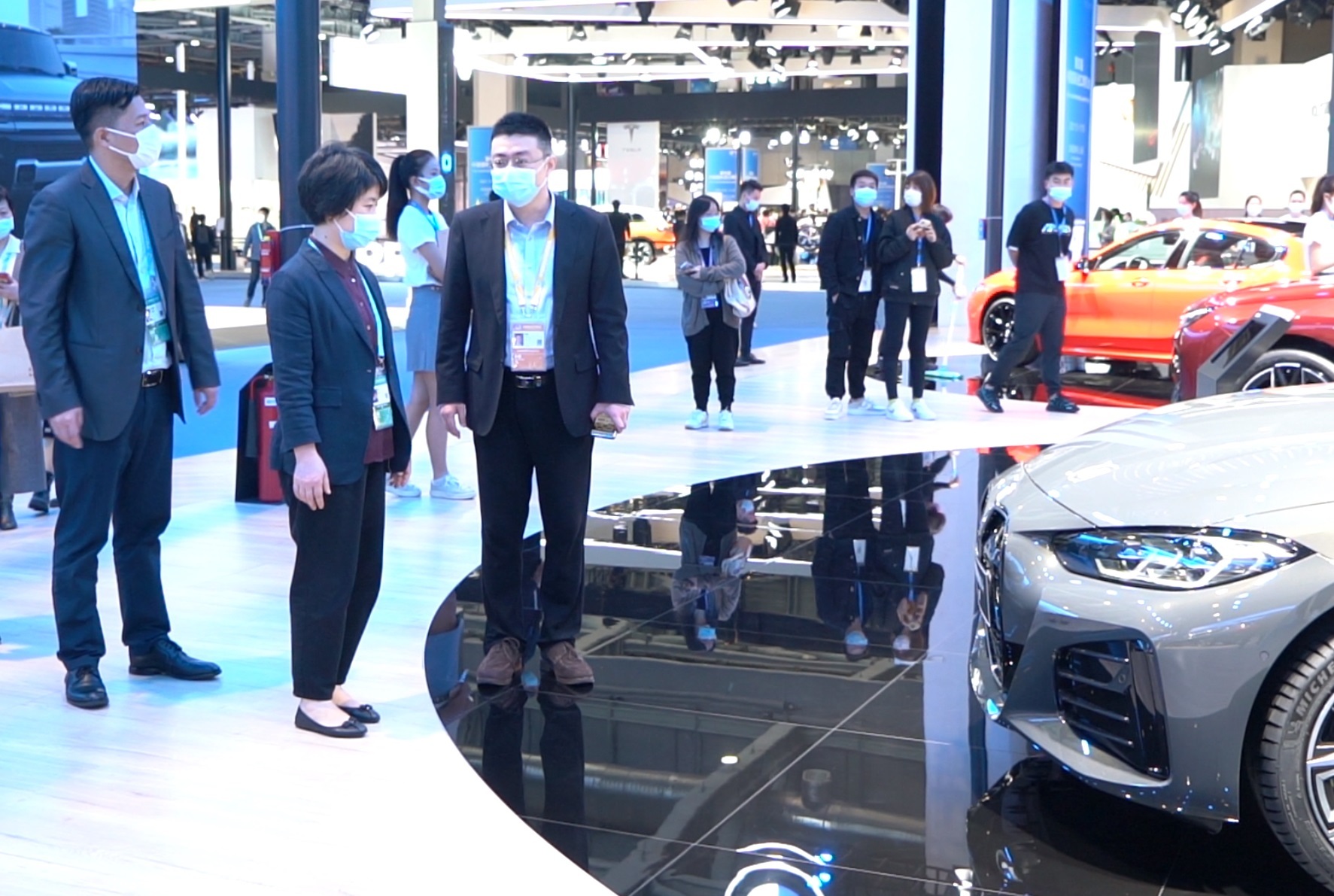 在进博会汽车展区,郭芳来到德国宝马集团展位。作为专注创新前沿科技的国际知名汽车厂商,宝马集团在北外滩成立了研发中心。作为连续四年参展的企业,宝马这次带来了六款车型,其中有一半是新能源车型,BMW iX将在今年年内上市,BMW i4也将很快登陆中国市场。预计到2025年,宝马将进入电动化发展全新阶段。郭芳详细了解了企业参展车型及未来发展计划,并指出要做好创新孵化,希望宝马在中国市场积极推进减碳目标,助力区域智慧出行建设。