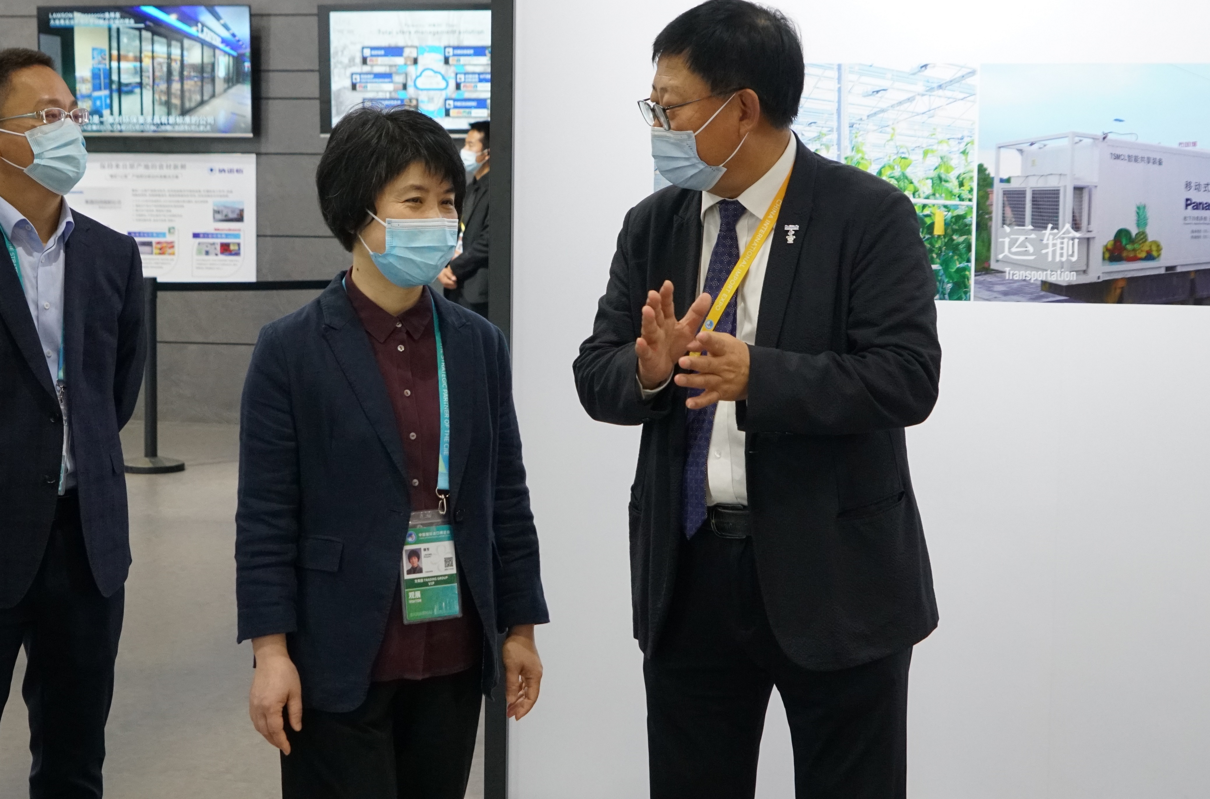 随后,郭芳来到松下电器展位。自2016年起,松下集团在虹口选址办公场所,之后松下集团旗下先后有7家企业落户本区。松下电器中国东北亚公司总裁CEO本间哲朗介绍说,本届进博会,松下带来了千余平方米的沉浸式智能互动体验展台,以“关护无界,身心如悦”为主题,在往届的重点参展内容“健康、养老、清洁”的基础上,还新增了在碳中和、碳达峰等环境方面的积极探索和相关成果,并首发多款健康、环保类新品和技术。郭芳指出,期待在更多领域、更广范围开展深层次合作,实现双方互利共赢,并嘱咐相关部门要继续跨前服务,为企业提供更强有力的支撑。