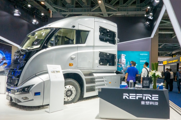 搭载镜星产品的49吨燃料电池智能重卡“星索一号”也成为此次展出的一大亮点。该车搭载了12瓶组70Mpa车载储氢系统,在实际运营中,只需加氢十多分钟,即可实现续航里程近1000公里。另外,配合车辆的L4级自动驾驶技术和智能网联技术,实现车队运营优化和效能提升。