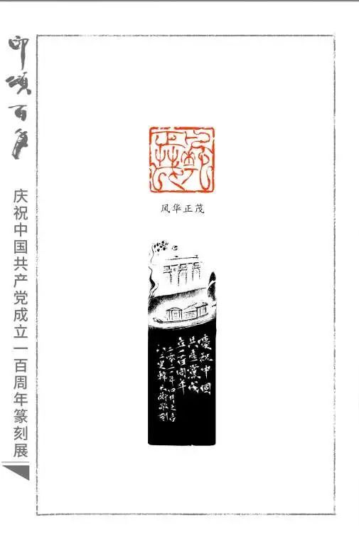 简介:领衔篆刻者韩天衡先生为中国艺术研究院中国篆刻艺术院名誉院长、西泠印社副社长,党龄六十年,此次精心篆刻了“风华正茂”一印。其他作者也以中国传统篆刻艺术为载体,赓续红色文脉,从我党“红船启航”到“共同富裕”、“新时代新征程“等,展现党在不同历史时期中的重要事件与辉煌历程,赋予了金石篆刻全新的内容与生命力。