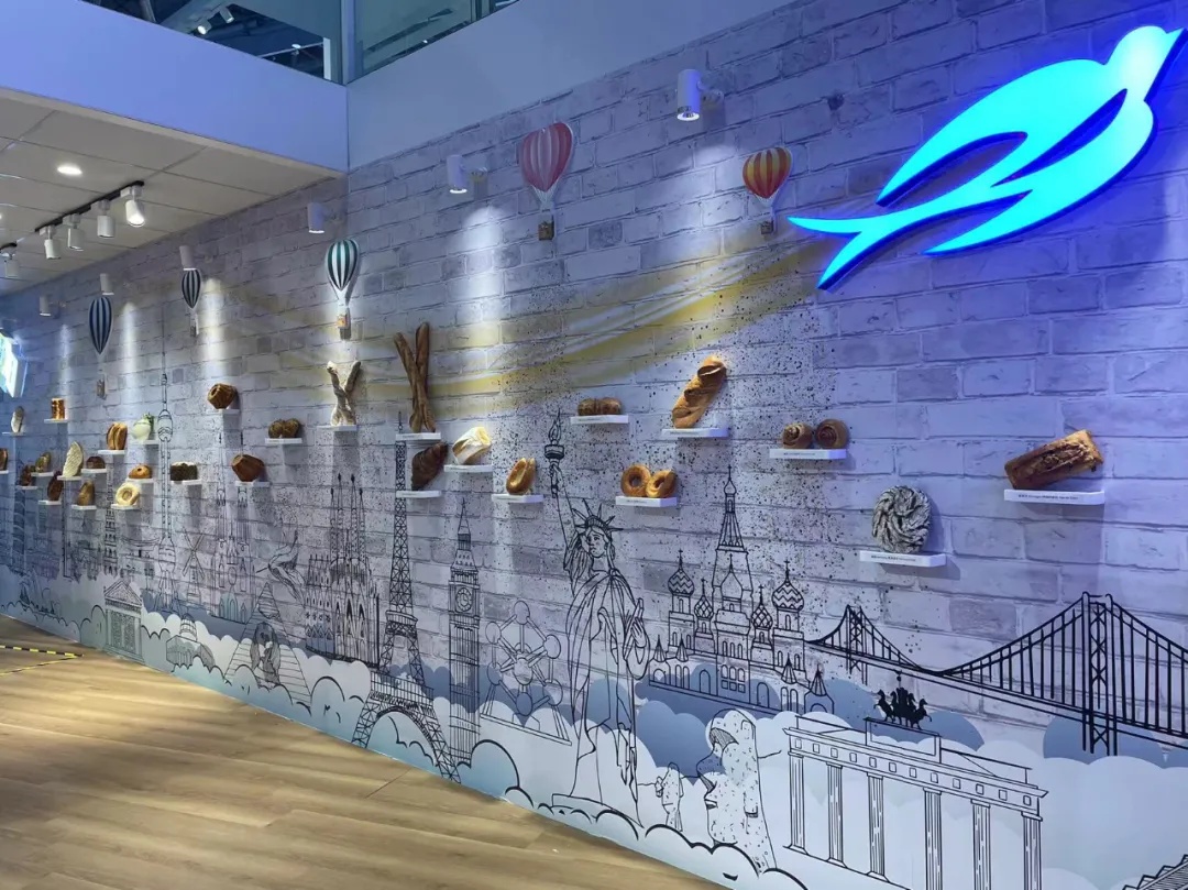 进博会现场惊现了“6米高的埃菲尔铁塔”,模型内可是大有乾坤!塔内藏着“东方明珠”造型的艺术面包,穿过铁塔,又可以直接走进石库门弄堂。在那里,有一面世界面包展示墙。墙上有世界30多个国家地标建筑的手绘图,每一个建筑的旁边,则是来自乐斯福专业烘焙师制作的当地特色面包。观众可以在这里拍照打卡,还可以扫描墙上的二维码获得这些面包的详细介绍,充分领略世界每个角落的烘焙技术和文化。