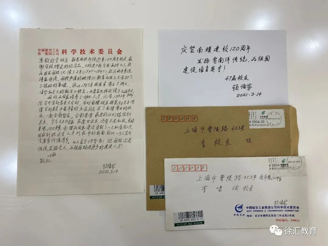 在南模建校120周年之际,顾诵芬院士给母校寄来了感谢信和题词,感谢高中时期母校的栽培,为国家建设造就了一大批有用人才,并且祝愿母校沿袭传统,发扬光大,为祖国输送更多的建设人才!