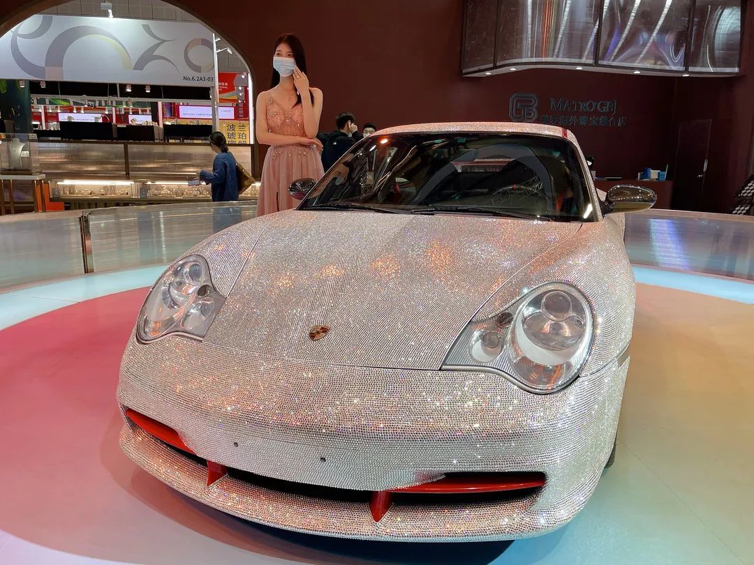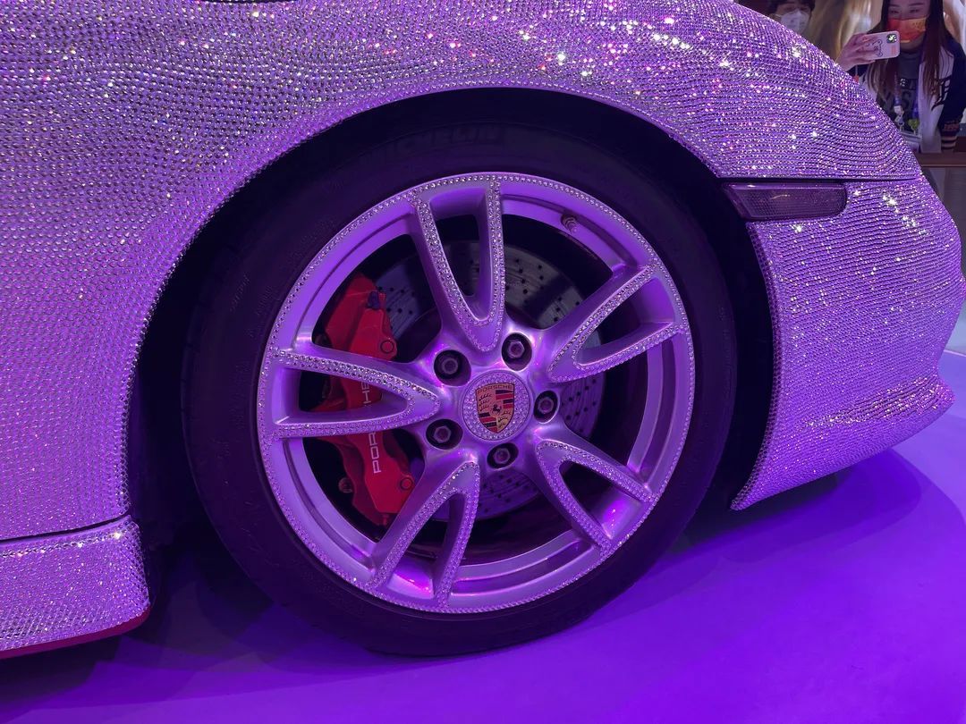 Bling Bling闪闪发光!镶了40万颗宝石的跑车绝对会让你惊呼“闪瞎眼”。记者在进博会消费品展区珠宝馆看到,一辆保时捷跑车上,铺满了亮闪闪的宝石,在灯光的照射下显得特别闪耀。这是该馆展陈单位体积最大的珠宝展品,是“珠宝馆”镇馆之宝,也是中国首秀。
