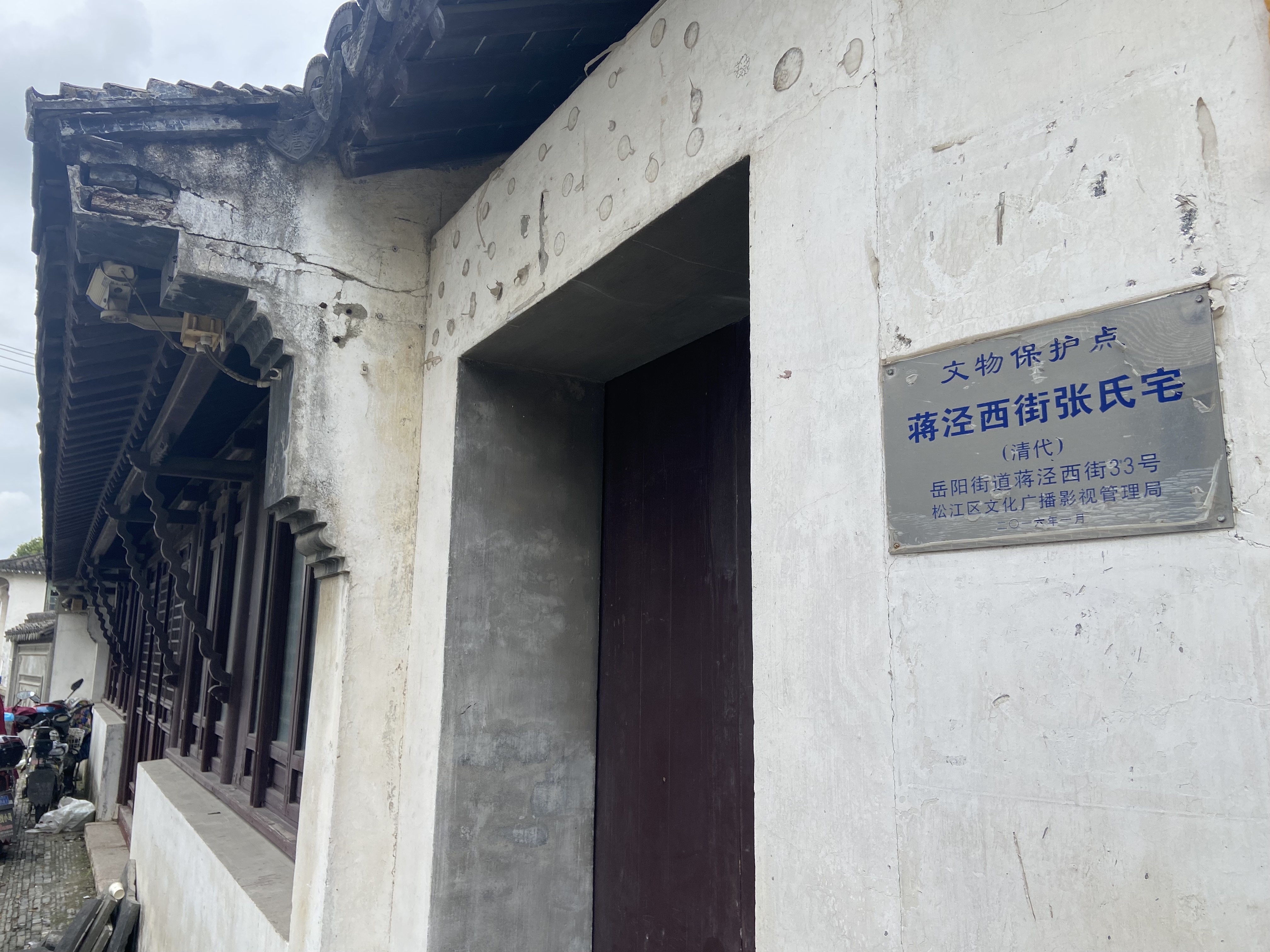 从岳阳街道庐秀新苑小区的西北门向外走,能看到一座古色古香的老宅,它安静地坐落于松江市河南侧,北接秀塘桥、西连秀南桥,与秀野桥隔河相望。这座老宅被称为蒋泾西街张氏宅,是松江区一处文物保护点。